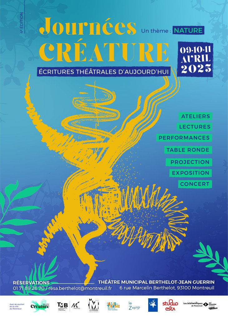 Les 9, 10, 11 avril 2025, les Journées Créatures sont de retour au théâtre Berthelot de Montreuil. Une journée d’ateliers d’écritures avec des autrices professionnelles, deux soirées avec des tables rondes, des lectures spectacle, des lectures de textes contemporains, une projection et un concert… c’est l’évènement à ne pas manquer.