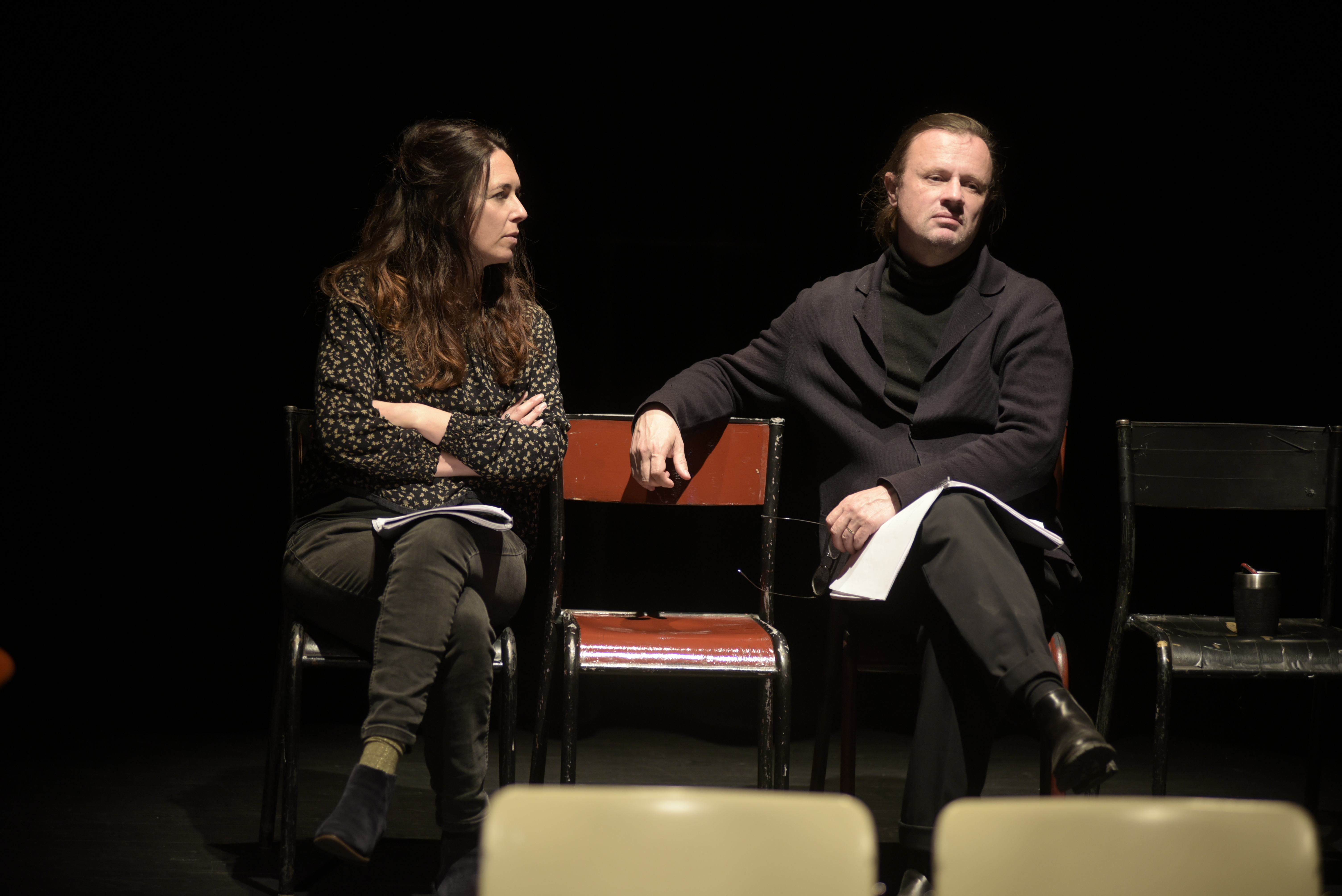 Du texte à la scène est un parcours participatif de spectateurice. Un espace pour lire, seul.e, en toute intimité une scène extraite d’une pièce de théâtre contemporaine. Puis un échange accompagné par Kelly Rivière, Léonore Confino et Mona El Yafi. Ensuite, des acteurices viennent lui donner voix, puis d’autres interprètes s’en emparent à leur tour, différemment. Jusqu’au point d’orgue de la soirée : une mise en jeu de la pièce intégrale dirigée par Véronique Bellegarde. Du Texte à la scène, pour entrer concrètement et joyeusement dans la fabrique de la création théâtrale.