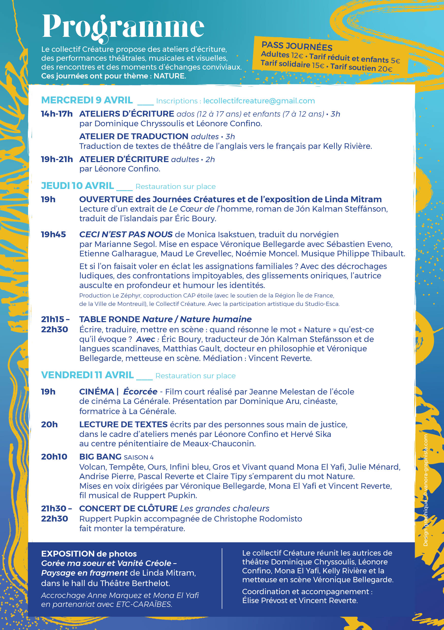 Au programme : ateliers, expositions, lectures mises en espaces, table ronde, projection et concert…
